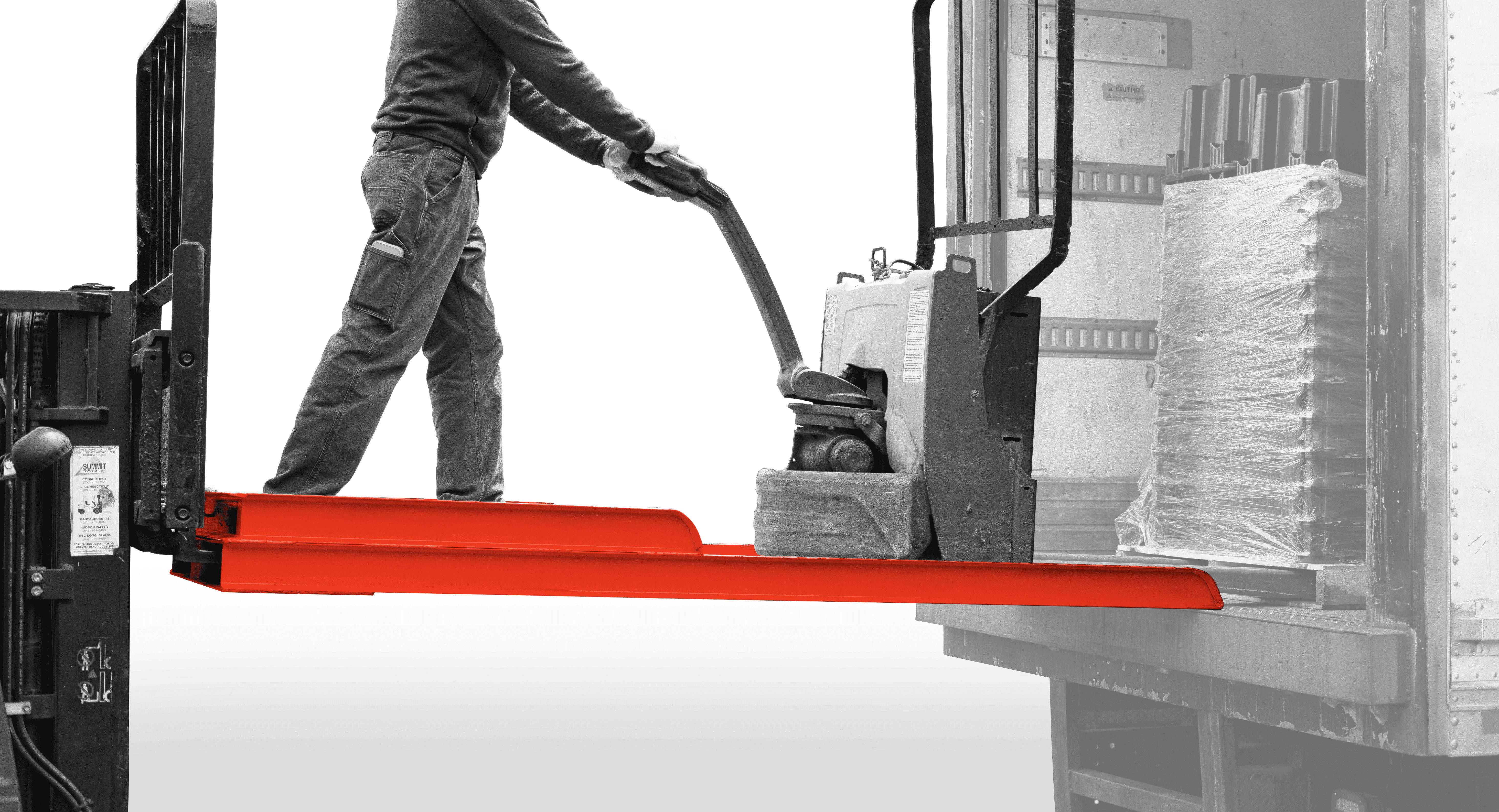 JackRampIt is an essential solution for facilities without loading docks, enabling forklifts to safely move a jack to and from the rear of a trailer for loading and unloading.